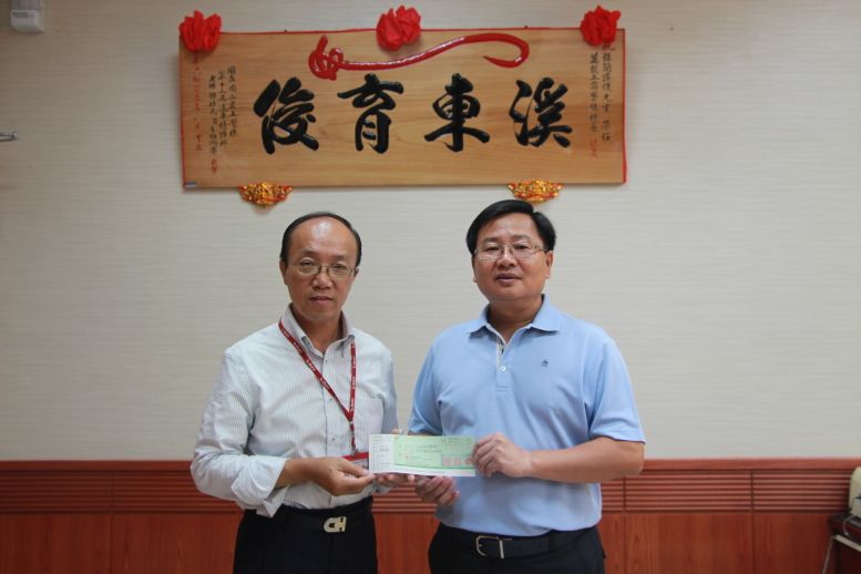 本校陳顯榮老師捐善款100萬,幫助學生急難 救助用途。張簡校長代表學校接受善款,整個儀式在校長室簡單而隆重舉行。