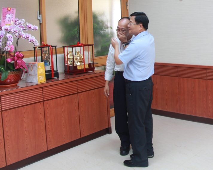 顯榮老師憶其先慈時悲從中來,校長安慰並嘉勉善行。