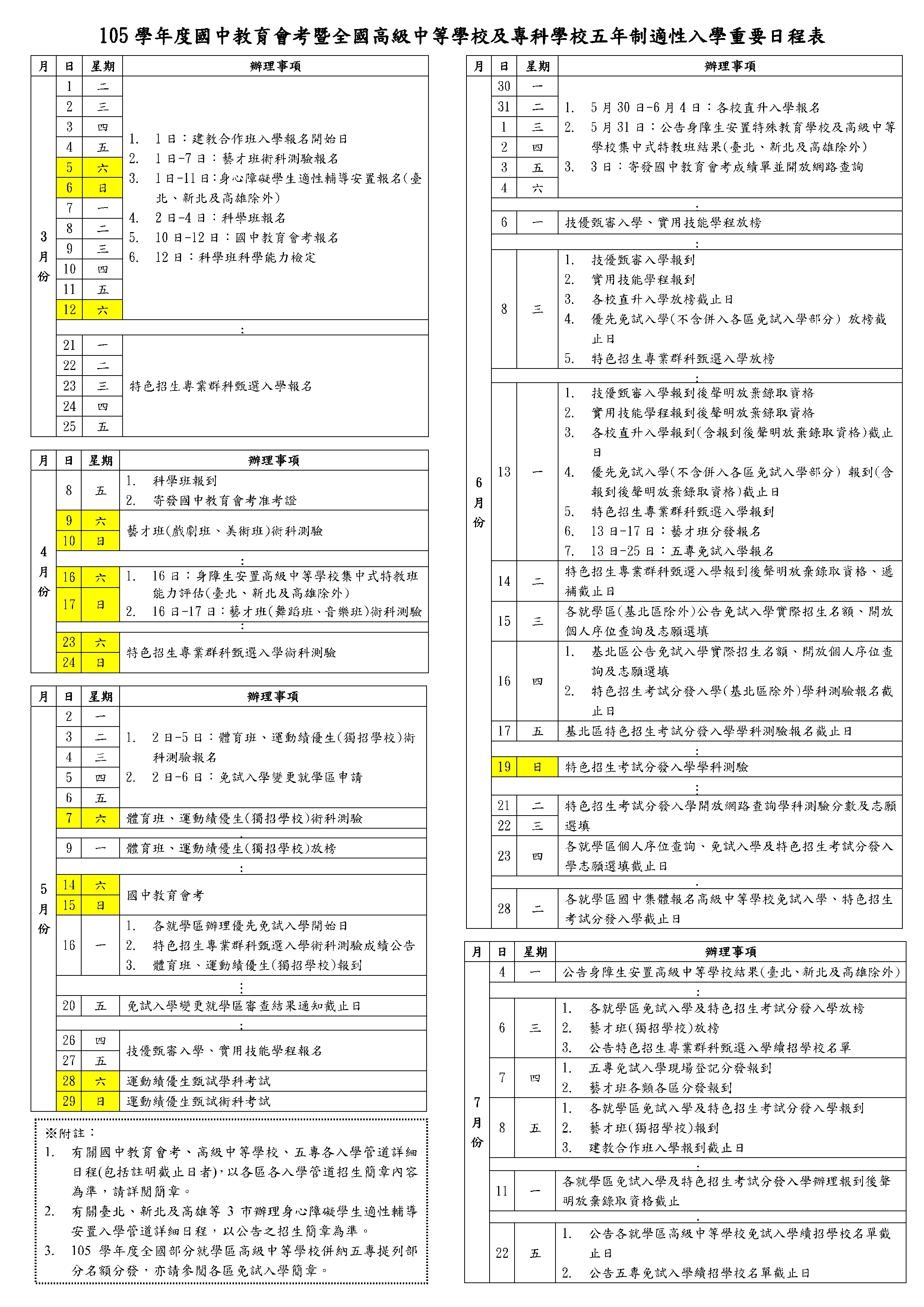 105學年度國中教育會考暨全國高級中等學校及專科學校五年制適性入學&