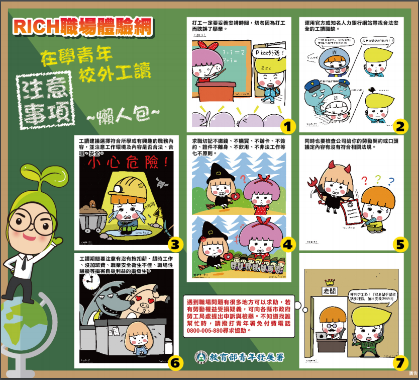 | 標題 | 教育部關心您:在學青年校外工讀注意事項 | 相關網址 | 無 | 人氣 | 8306 |