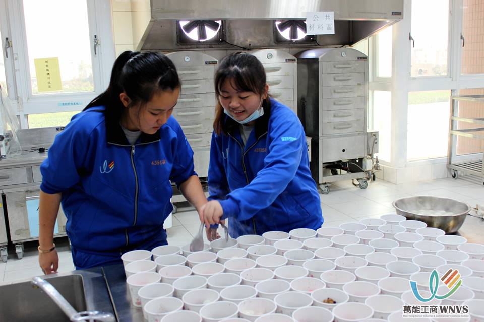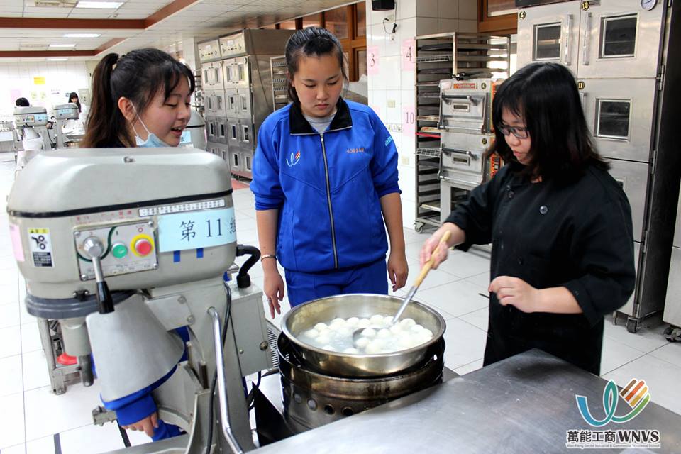 張簡校長請餐飲科特別配合課,在冬至教學生做好吃湯圓...