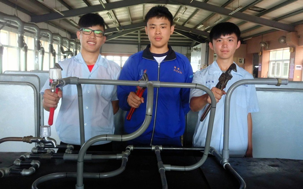 嘉義縣萬能工商電機科賴柏翰、 陳煥智、賴琝璁,一舉獲得今年全國技能競賽南區賽「配管與暖氣職類」前三名。
