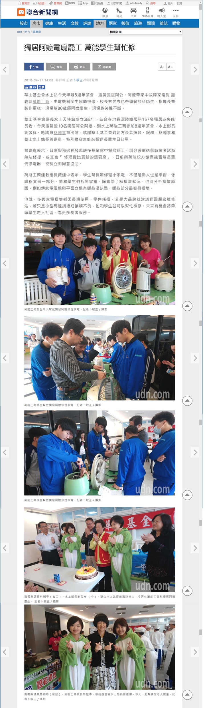 媒體報導-獨居阿嬤電扇罷工 萬能學生幫忙修