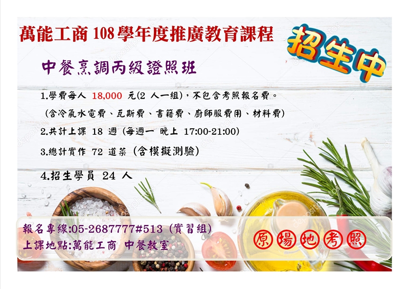萬能工商推廣班-中餐烹調丙級證照班