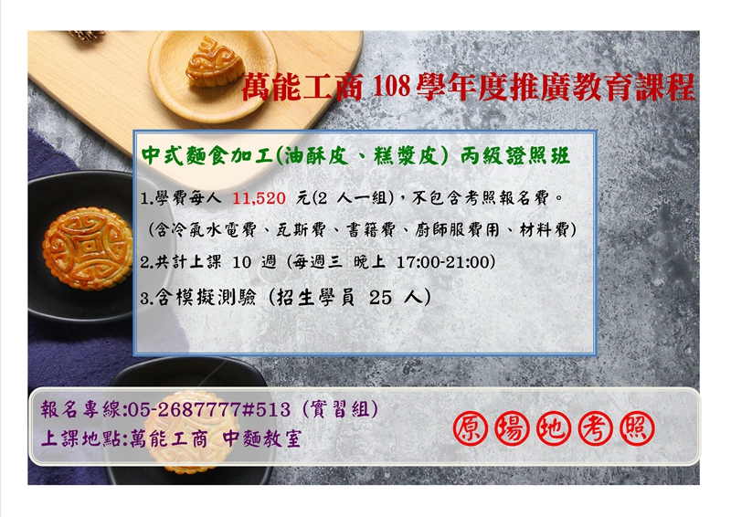 萬能工商推廣班-中 式麵食加工丙級證照班