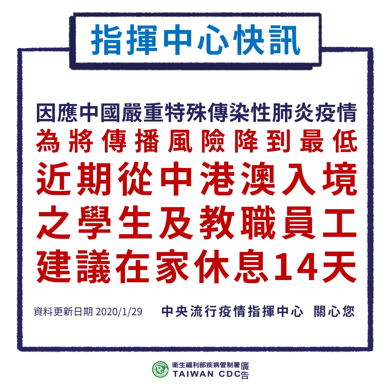 指揮中心呼籲,各校應加強學生勤洗手、呼吸道衛生與咳嗽禮節