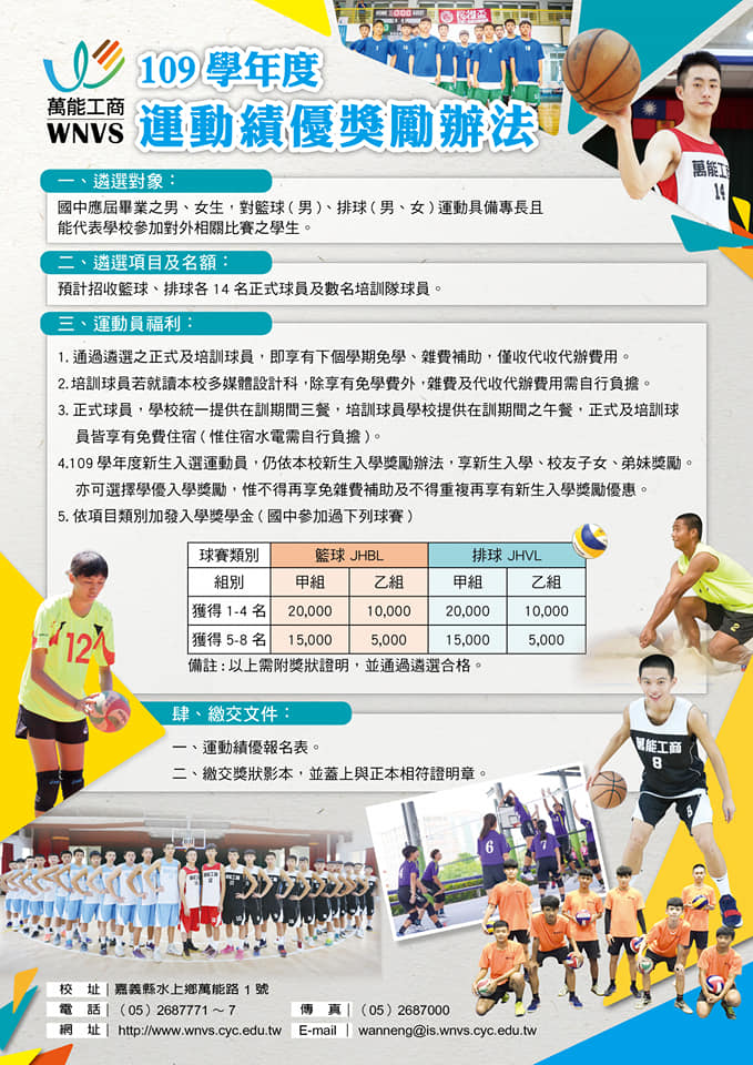 | 標題 | 萬能工商109年度運動績優特色招生 ~排球隊甄選~ | 相關網址 | 無 | 人氣 | 11751 |
