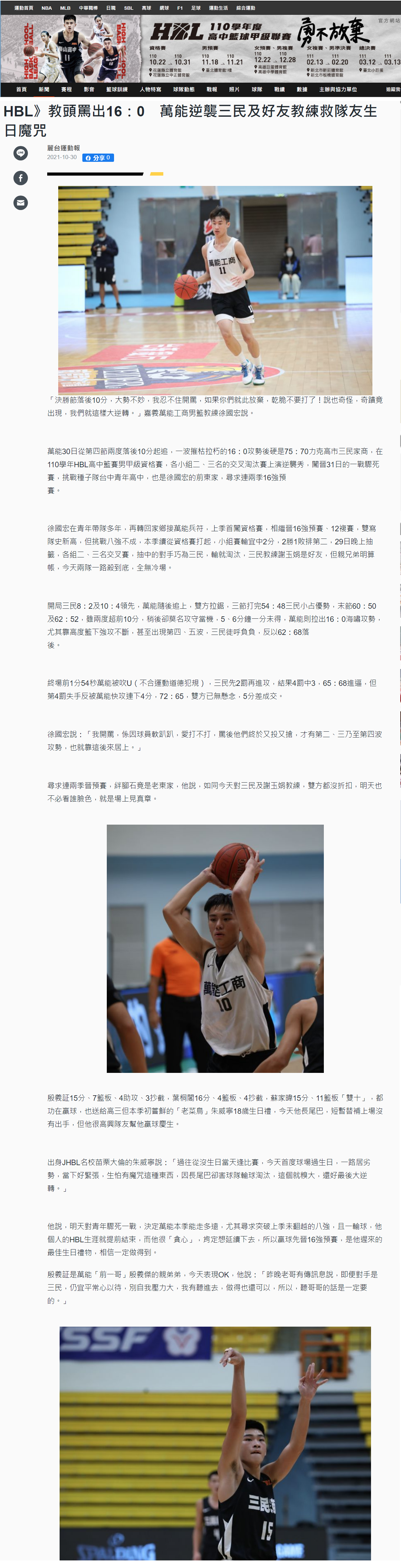 《HBL》教頭罵出16:0 萬能逆襲三民(75:70)