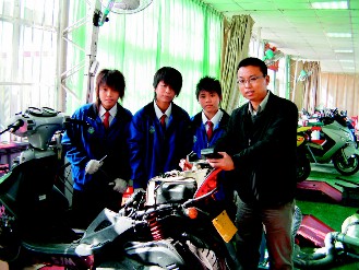 汽車科劉主任說,就讀本校汽車科可以學習到許多專業知識,例如:機器腳踏車修護、汽車修護、車輛引擎及底盤保養、車輛烤漆與汽車美容習、堆高機操作課程..等等,而且學校本身就擁有合格的證照檢定場地,學生可以在自己上課的地點考試,同時也增加考取證照的機會。汽車科不但辦得好,而且又有發展特色,我們在推進專業特色化、課程精品化的同時,積極構建仿照實境機制,營造良好的職業能力培養氛圍,可以讓學生從學習中獲得喜悅與信心,當然可以吸引到許多對於汽、機車有興趣的學生就讀本科系。而科內的三位女同學,堅持依照自己的興趣就讀本科系,也是由於這個原因。